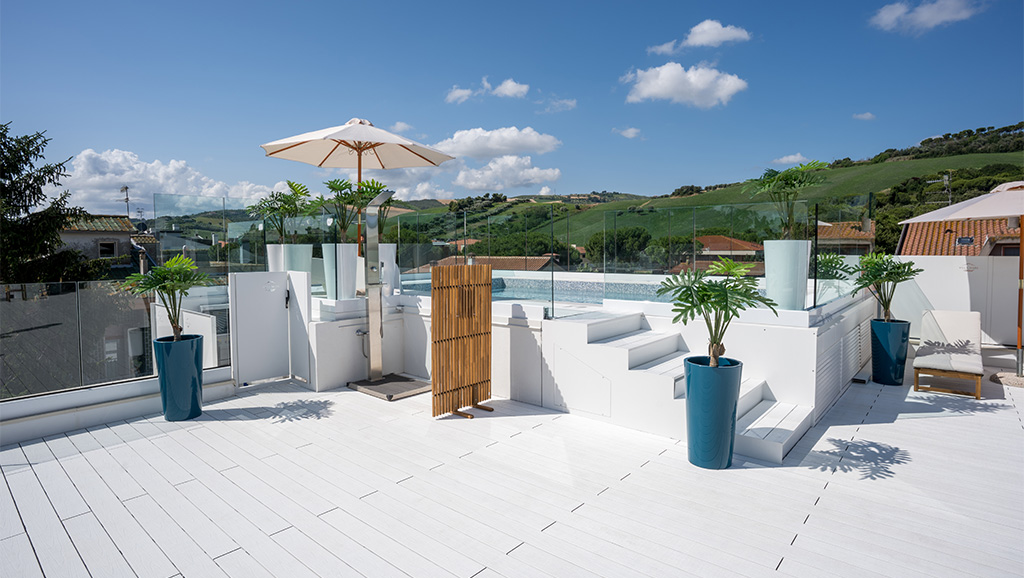Per un soggiorno all’insegna del massimo comfort potrai scegliere uno dei 6 Trilocali, spaziosi e finemente arredati. Tutti gli appartamenti, totalmente insonorizzati, sono dotati di doppi servizi e di terrazza abitabile e arredata, aria condizionata, angolo cottura. Si sviluppano su una metratura di circa 80 metri quadri e alcuni godono di una suggestiva vista sul mare e sulla pineta.